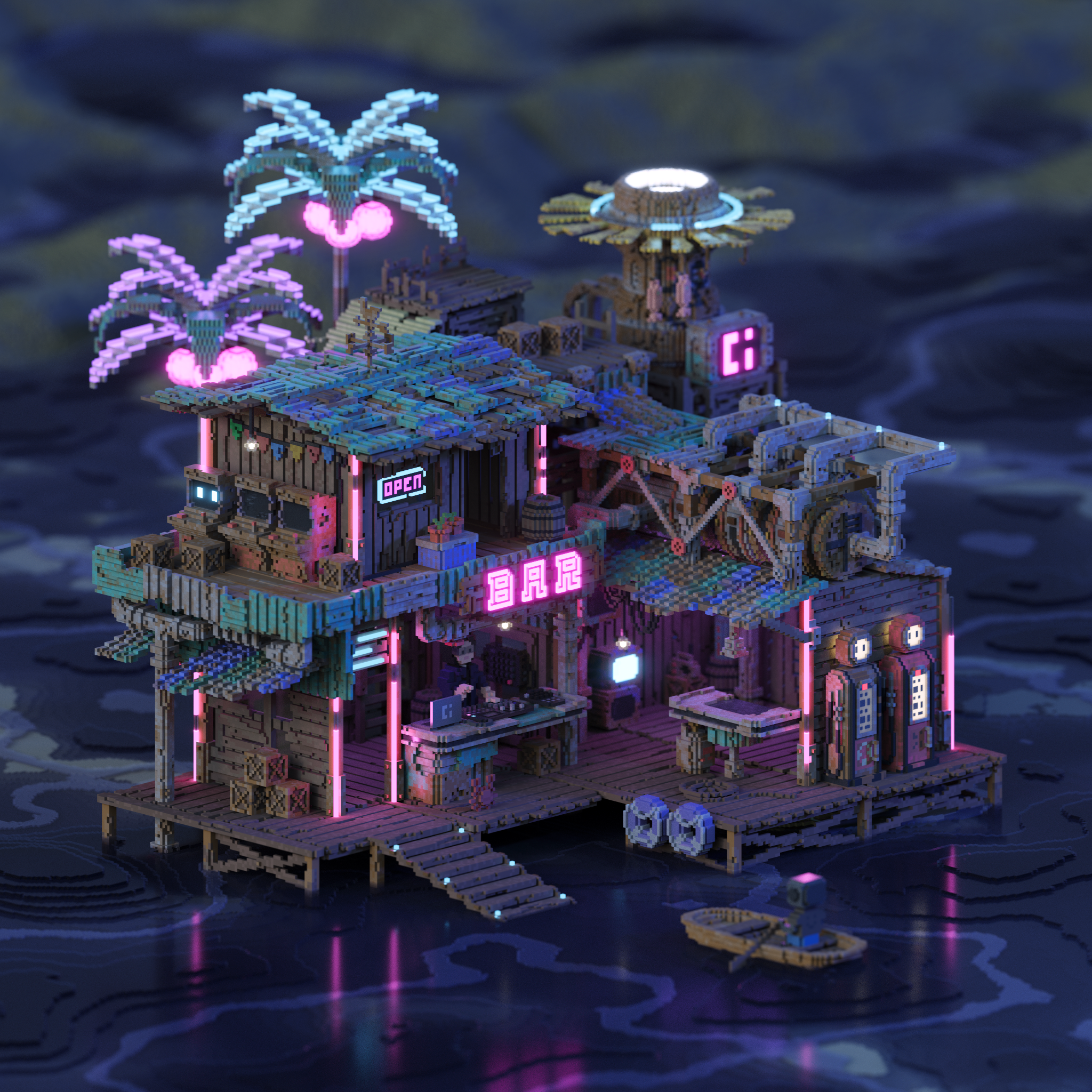 Breadkiller (bkvoxel) is a computer engineer who has been freelancing as a voxel artist since 2018. He is dedicated to compressing beautiful scenes from reality into the pixel/voxel world, mainly concentrating on Asian traditional architectures and sci-fi neon cities. This year he is building up the worldview and background of his voxel collectible series “AtomPlanet Bot”.