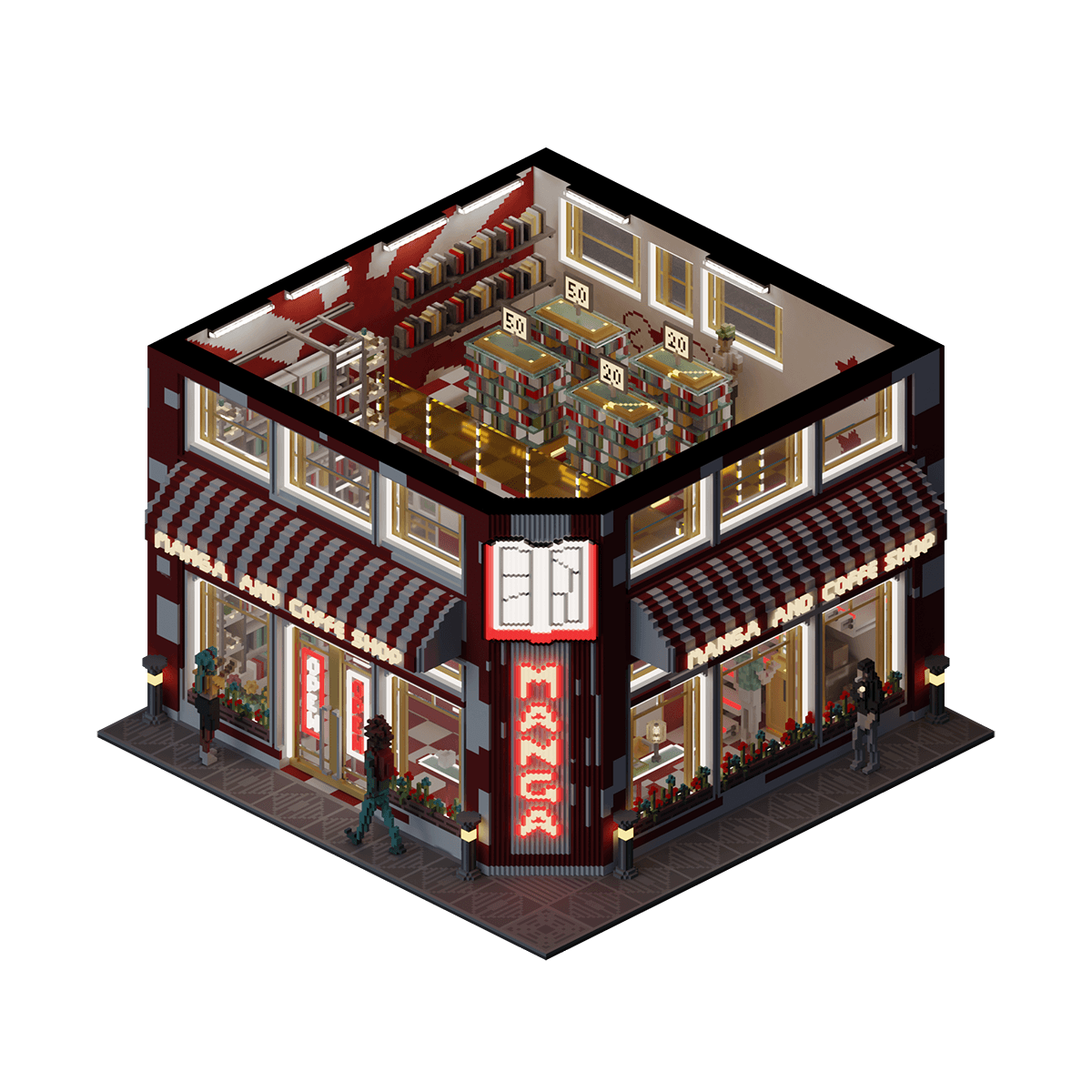 A manga store with countless editions of books and manga memorabilia, with shelves of books engulfing every corner of the store, with the perfect novel for each customer just a shelf away.