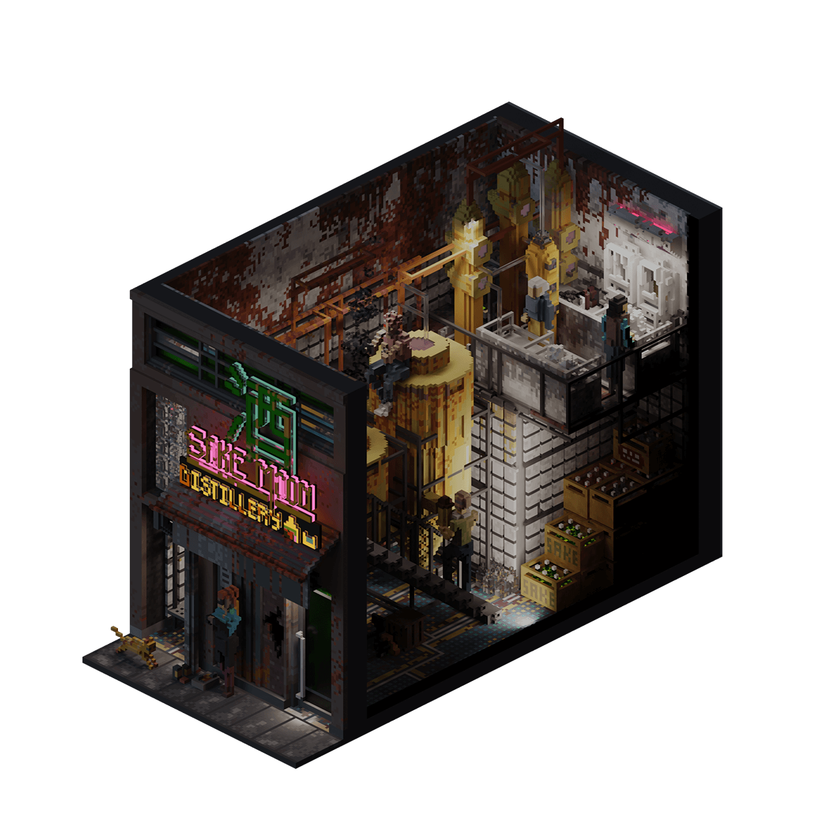 Sake Moon is the oldest and most famous distillery in the City, which has been brewing and providing sake to citizens for years, and its origins date back to old NeoTokyo.