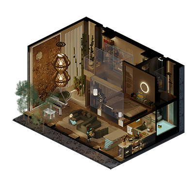 Deriving her name from the rock climbing jargon "beta" which means "a solution to ascend the wall" Beta is a voxel artist who aspires to continuously evolve and create visual worlds that recall common human experiences and celebrates imagination. Working in the fine art industry during the day, Beta draws inspiration from daily life, science fiction, and anime in her voxel works and loves experimenting with unrestrained and bold color schemes in her images.
