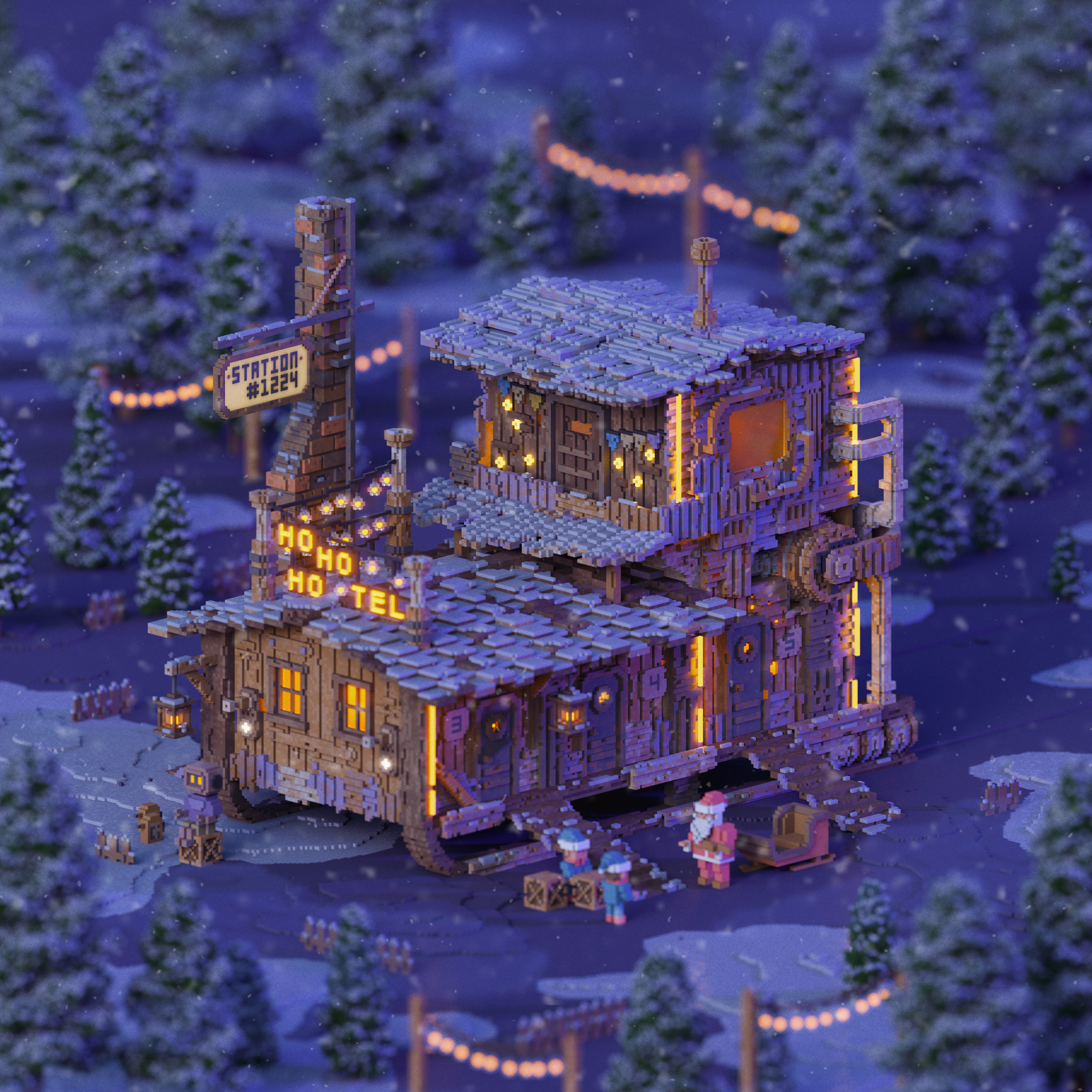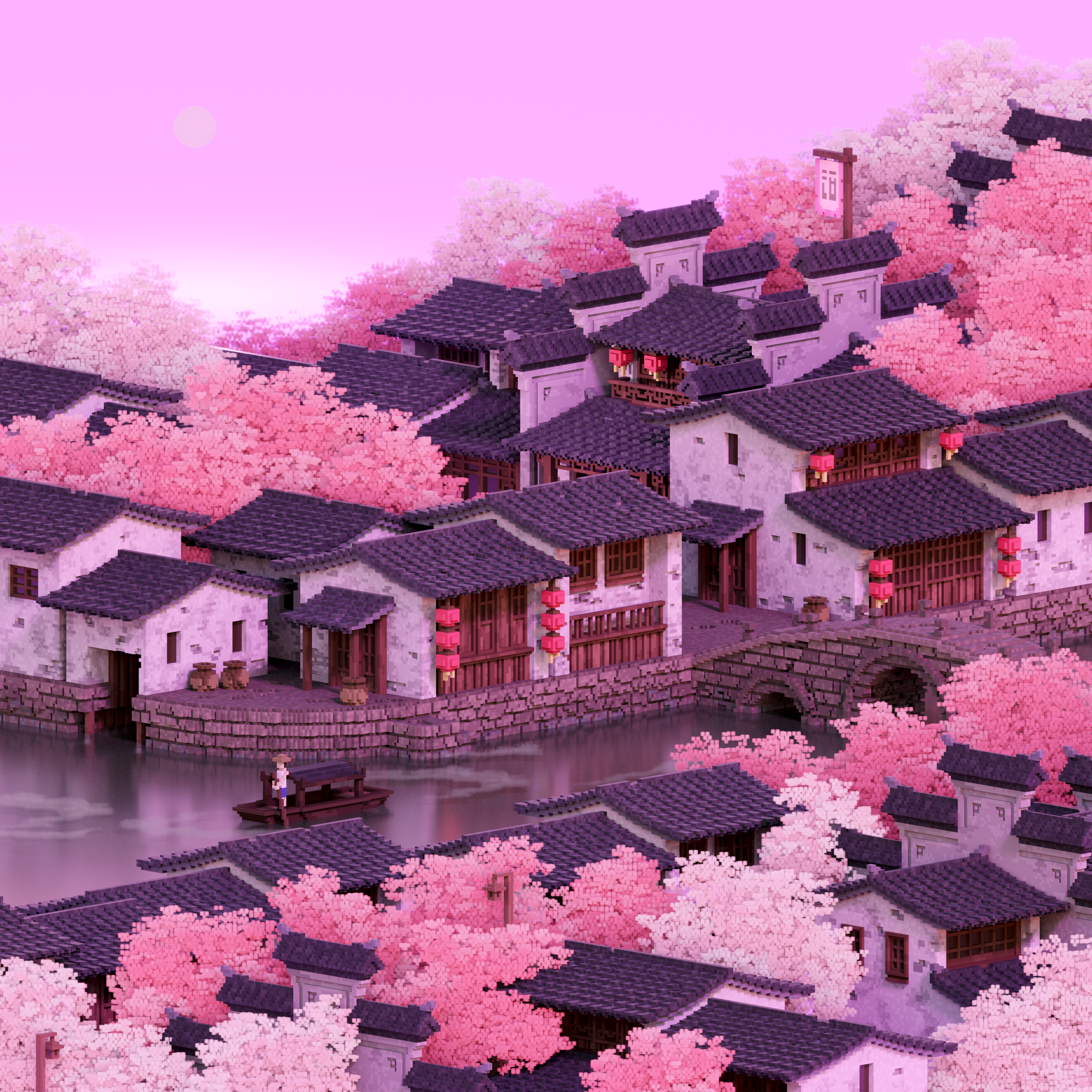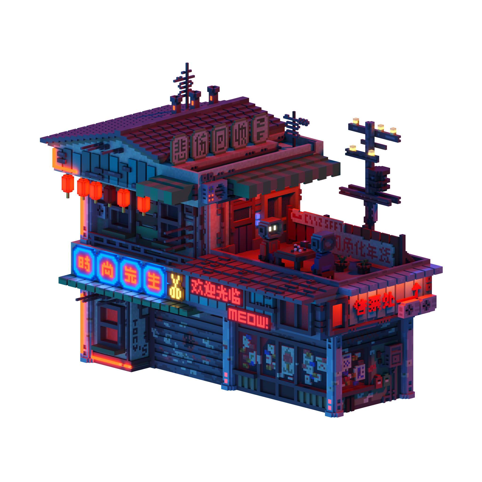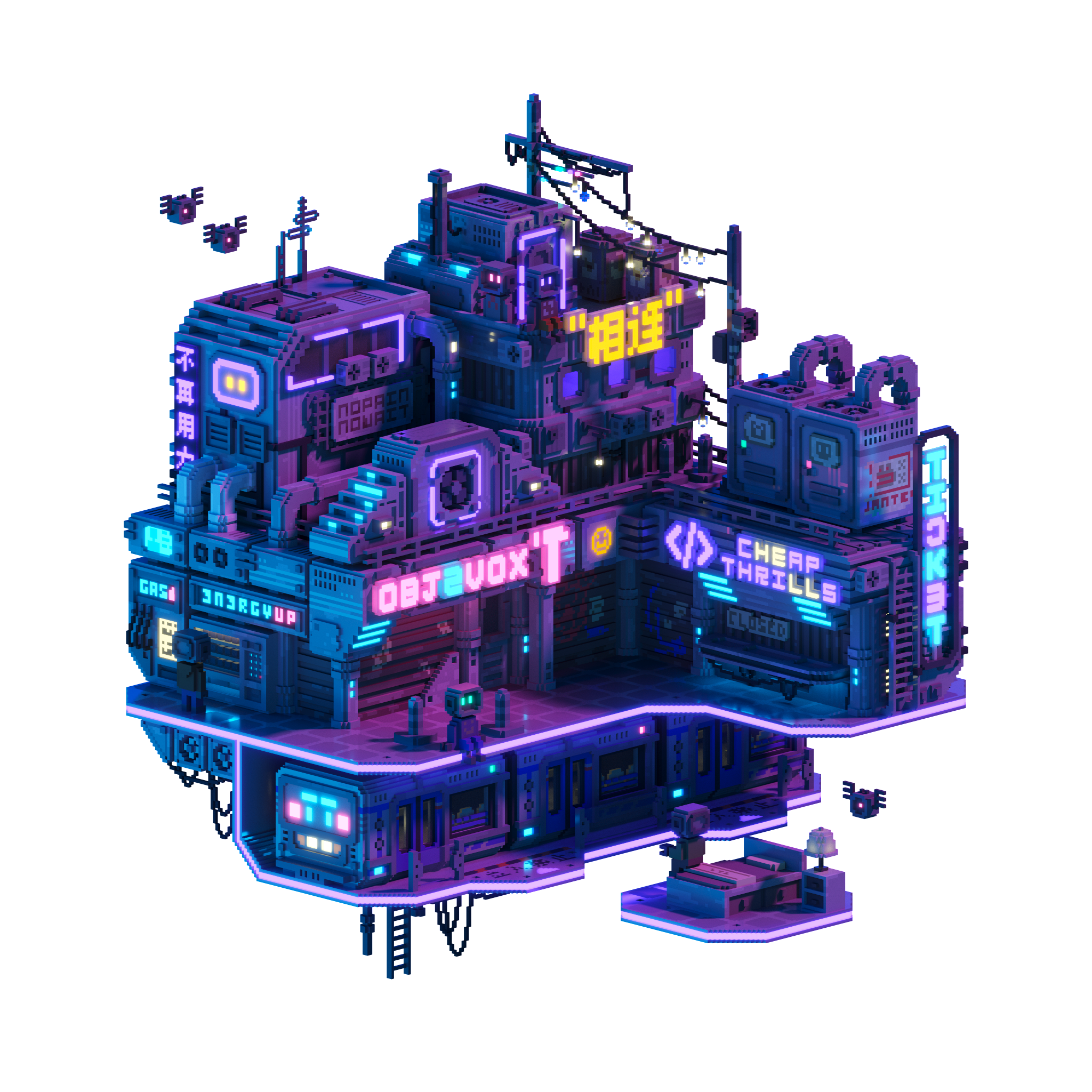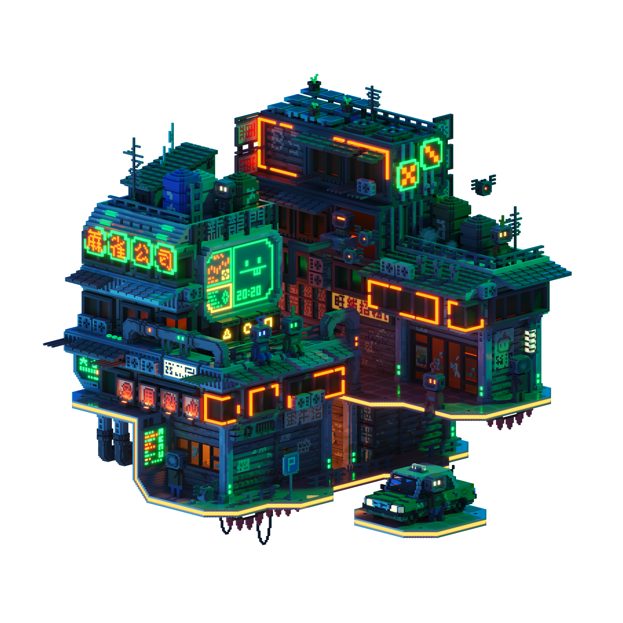Breadkiller (bkvoxel) is a computer engineer who has been freelancing as a voxel artist since 2018. He is dedicated to compressing beautiful scenes from reality into the pixel/voxel world, mainly concentrating on Asian traditional architectures and sci-fi neon cities. This year he is building up the worldview and background of his voxel collectible series “AtomPlanet Bot”.