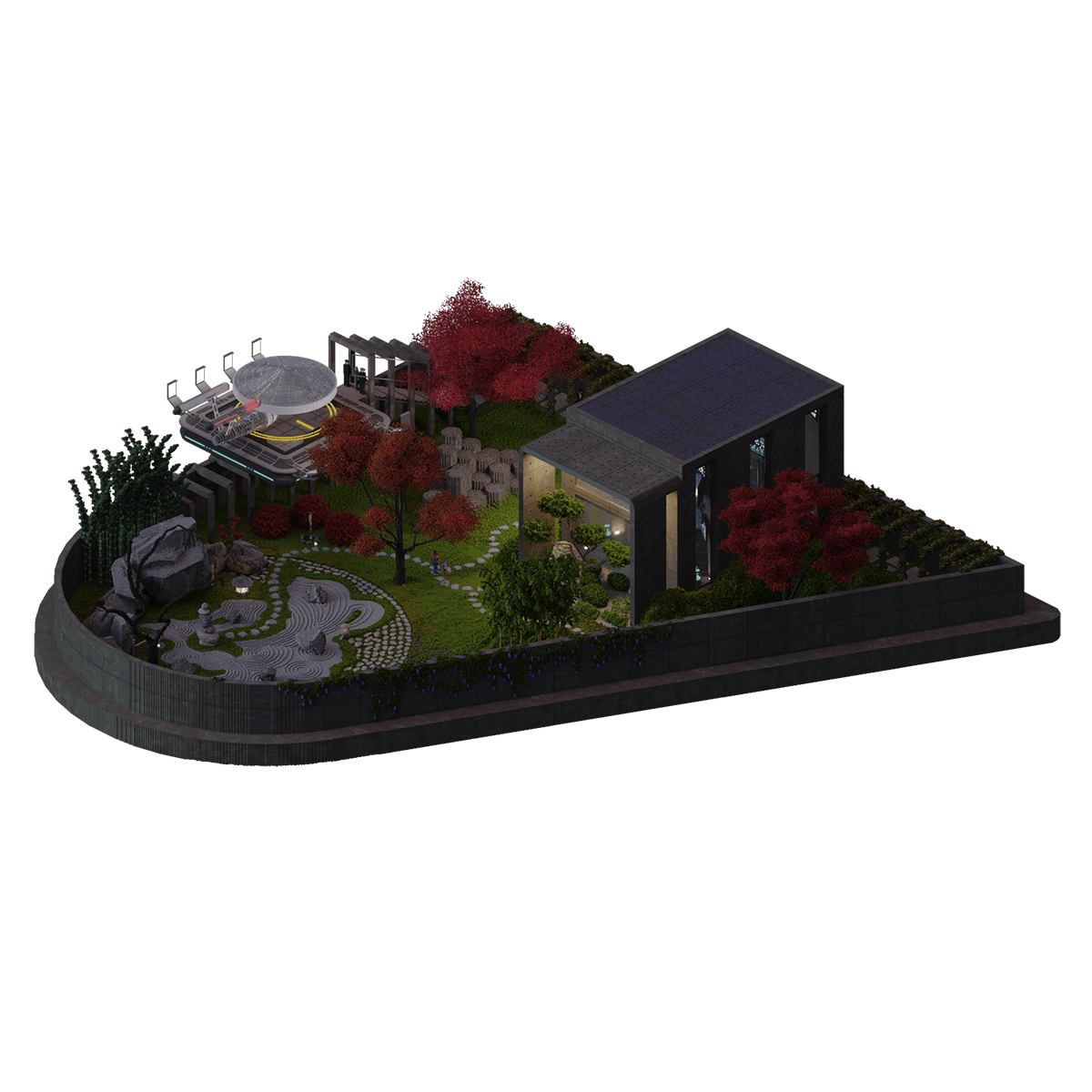 The Villa of Tadashi Miyamoto is a highly secure private compound surrounded by the blue skies and clouds of NeoTokyo, and a sight that is unfamiliar to most, save for those at the pinnacle of the City. Visible from afar due to the vivid colors of their grounds and gardens, particularly from the deep crimson leaves of the Japanese Maple Tree, the Villa looks to be another show of the endless wealth of the City’s elite. As the heir and Chief Technical Officer of the Miyamoto Group, Tadashi Miyamoto is responsible for overseeing the development of all the cutting-edge technology within the company. Having been commissioned by the NeoTokyo Ministry of Defence to develop an experimental prototype, a powerful AI encased within a synthetic humanoid body, he has since relocated his work to the privacy of his own home to shield the project from any prying eyes that may seek to sabotage it.