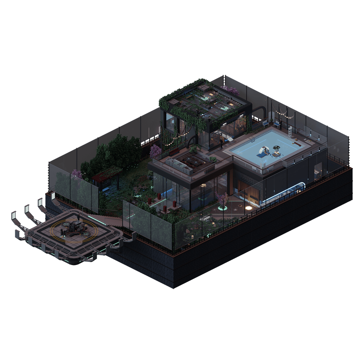 A rooftop compound located at one of the highest points of NeoTokyo is home to the City's most notorious and powerful Yakuza boss, tucked away in the safety of his personal fortress.