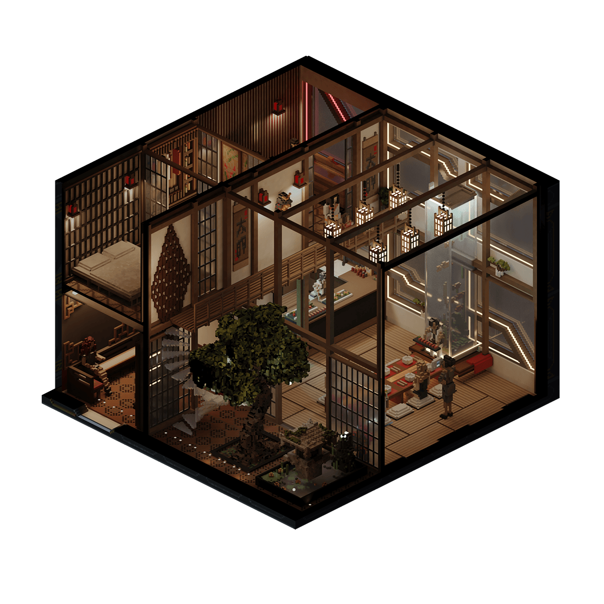 The open-planned wooden apartment of a prominent family with a history in Tokyo that dates back generations. Decorated with a range of ornaments and artworks that reflects their rich heritage, it is evident to all who visit their history within the City.