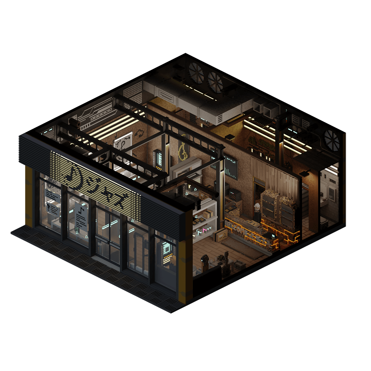 An upscale music store that sells everything from guitars and effects pedals, but is most well known for its wide range of the latest MIDI controllers and sequencers, which are popular with NeoTokyo's DIY musicians and producers.