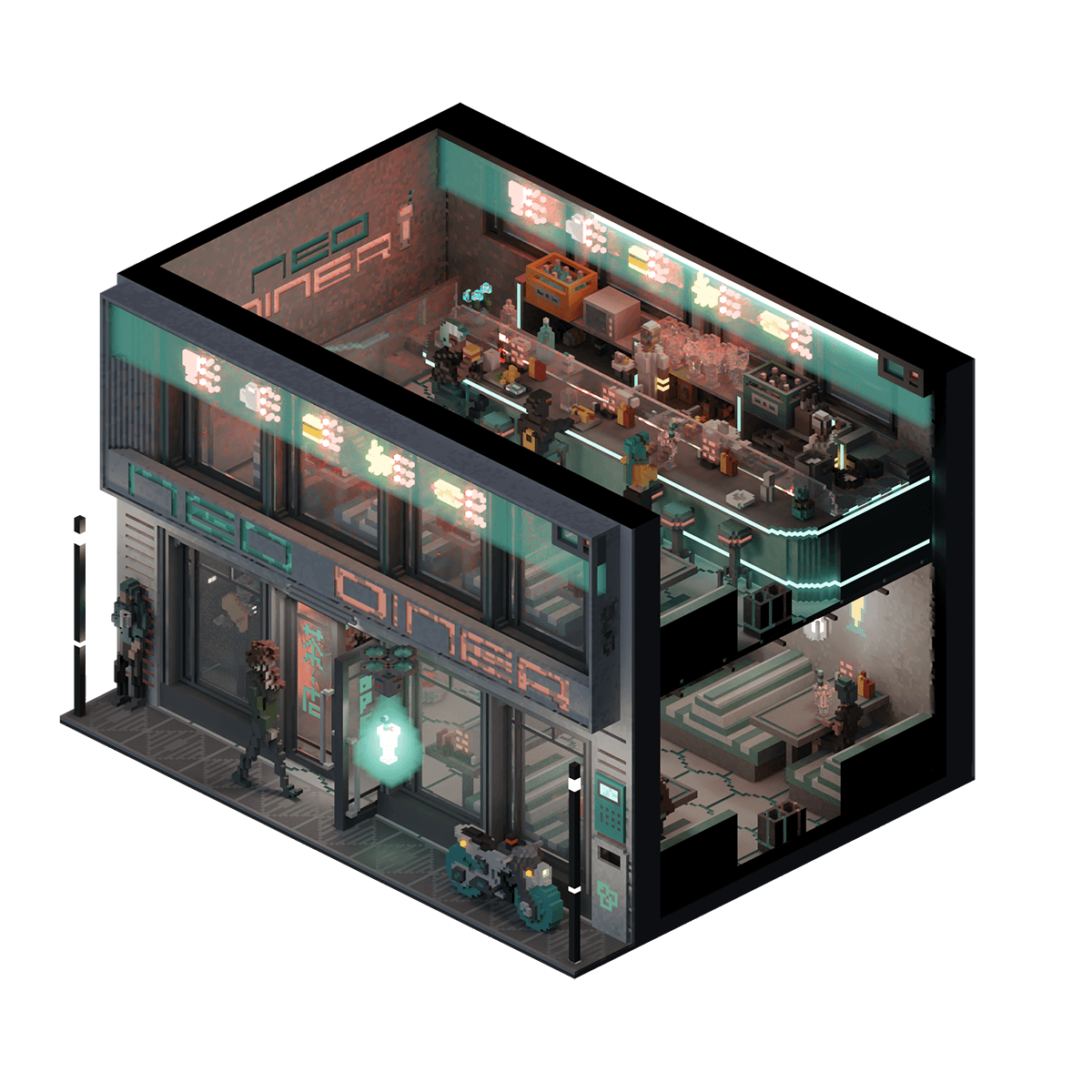 A contemporary take on the classic 1950s lunch car-style diners, the Neo Diner brings the timeless classics of burgers, fries, milkshakes, and jukeboxes to the mouths of the masses in NeoTokyo.