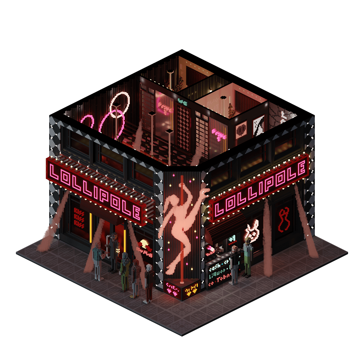 Lollipole is a strip club in the backstreets of downtown NeoTokyo, which is filled with a host of salarymen that frequently use the establishment to celebrate the completion of their business deals.