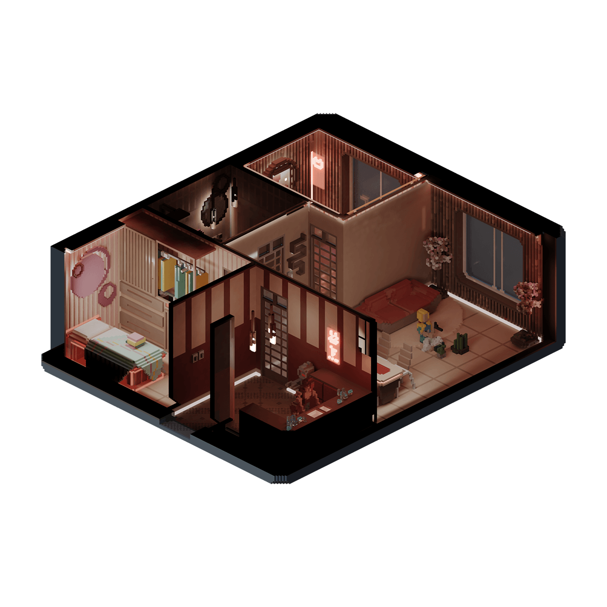 Sharing common interests of flowers, cats, and novels, noticeably influencing the decor of their two-bedroom house, two young mothers call this monochromatic apartment home, a space they share with their young daughter.