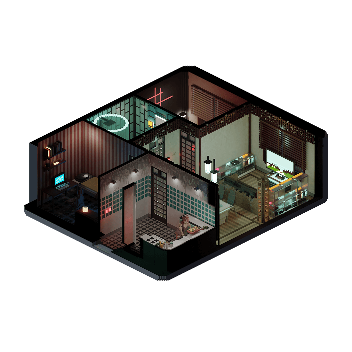 The shared apartment of two coworkers from a design firm where they each designed their own rooms, resulting in two wildly different patterns and colors used in each - showcasing the differences in their personal styles of design.