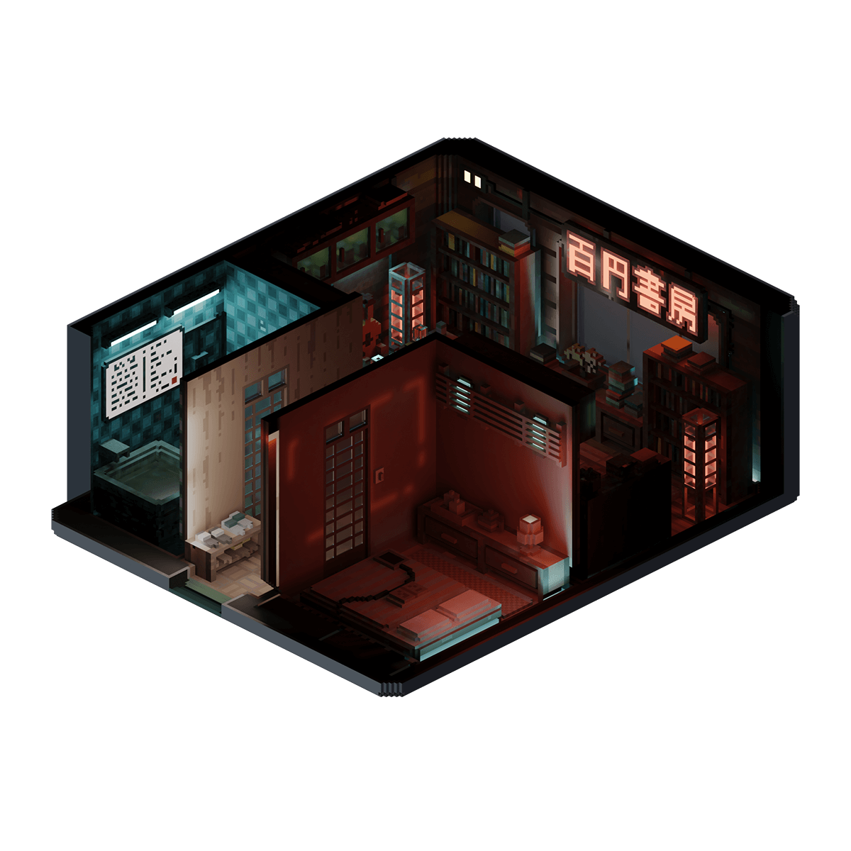 A small tea house and bookstore, tucked away from the main streets of NeoTokyo, provides a quiet sanctuary for the city's people to relax and get lost between the pages of their favorite books.