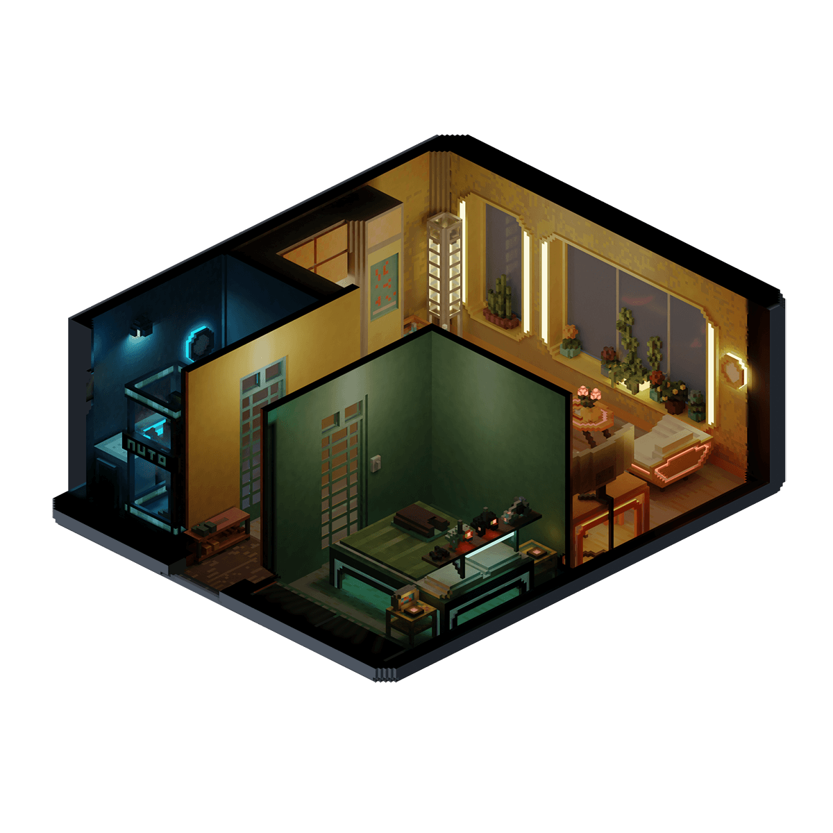 The bright and colorful apartment of a young couple where each room is painted and decorated in a different color, cultivating a fun and funky space for them to live.
