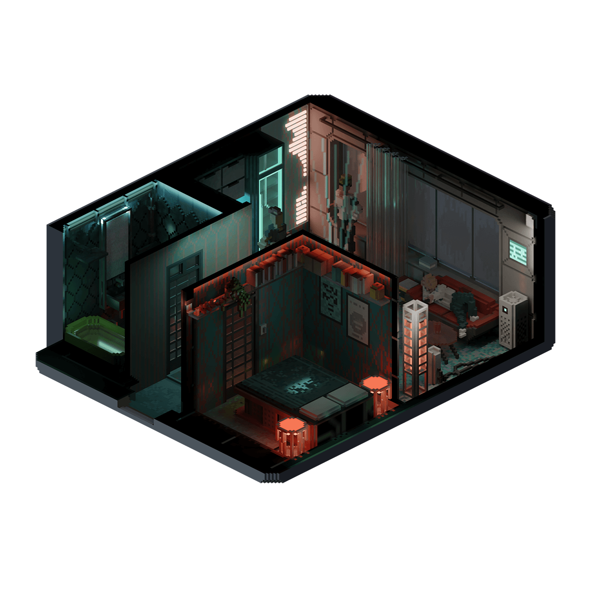 The late-night house party of one of NeoTokyo's many salarymen, as drugs that negate the effects of a sleepless night are commonplace in NeoTokyo, partying until dawn and blowing off some steam with his colleagues after a big week is a normal part of corporate life in the City.