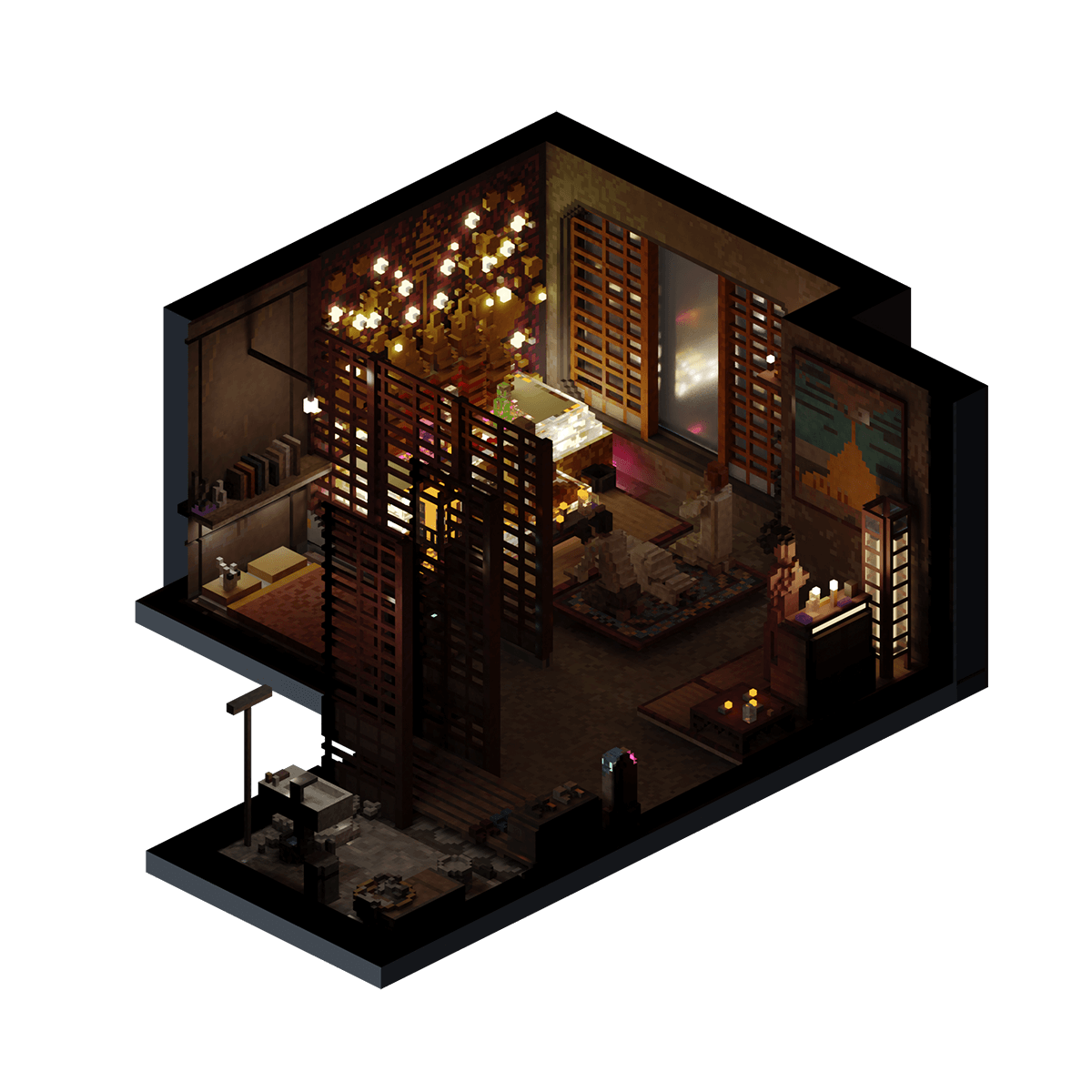 A small apartment and place of worship owned by a Buddhist monastery outside of the City used to house their Buddhist monks and provide them with a quiet place to pray in NeoTokyo.