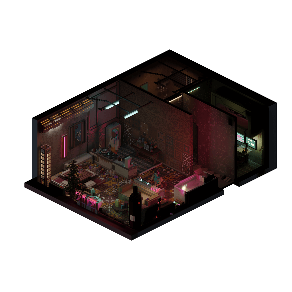 The eclectically decorated apartment of a family of resellers, who make their money buying and reselling goods they obtain from garage sales, flea markets, and police auctions. They have kept some of their favorite bargains for decoration and have saved an electric keyboard; the wife is currently learning One Summer’s Day by Joe Hisashi.