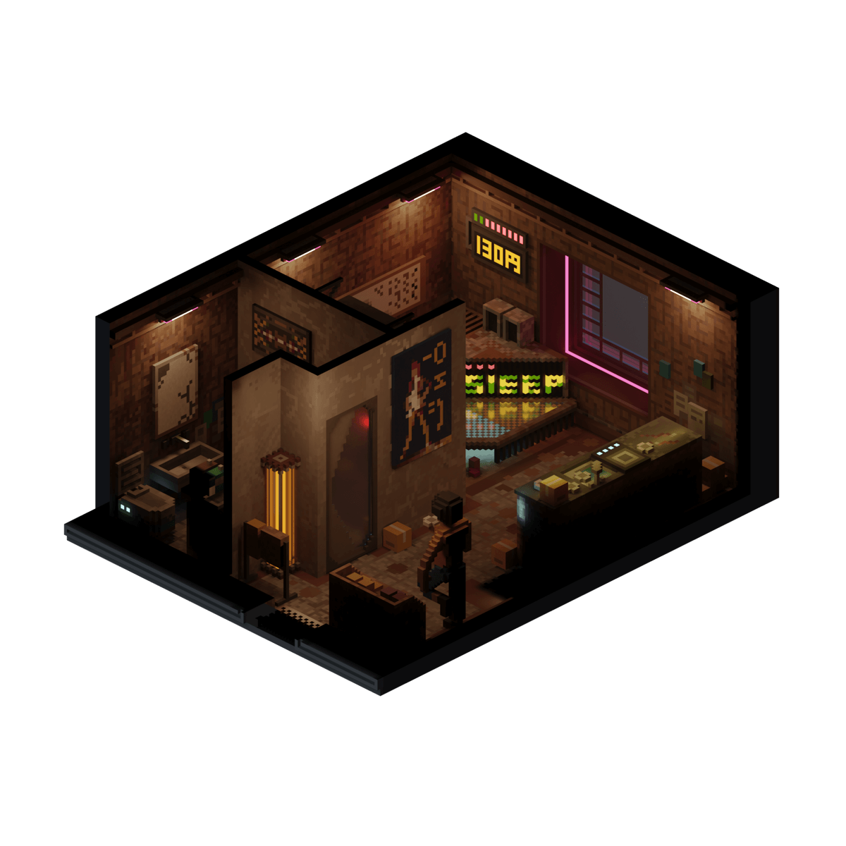 The studio apartment of a factory worker on the night shift, relaxing with a cup of tea after coming home, where he is being reminded by his alarms that it is now time for sleep.