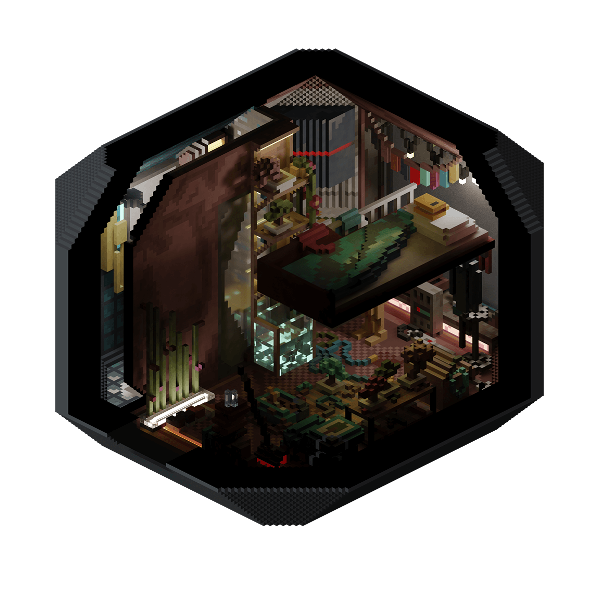 The small capsule apartment of an old man who has taken up gardening in his spare time to brighten up his house, and keep his mind and body busy in his retirement.