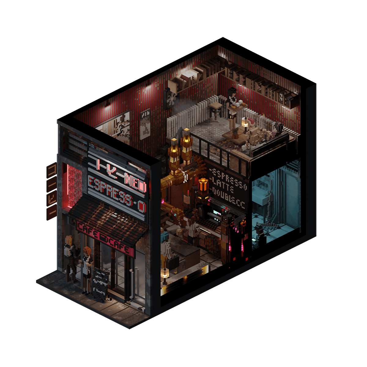 NeoEspress-O is a popular cafe and roastery frequented by many of NeoTokyo's coffee aficionados, where they grab their morning cups of coffee before heading to work and starting their days.