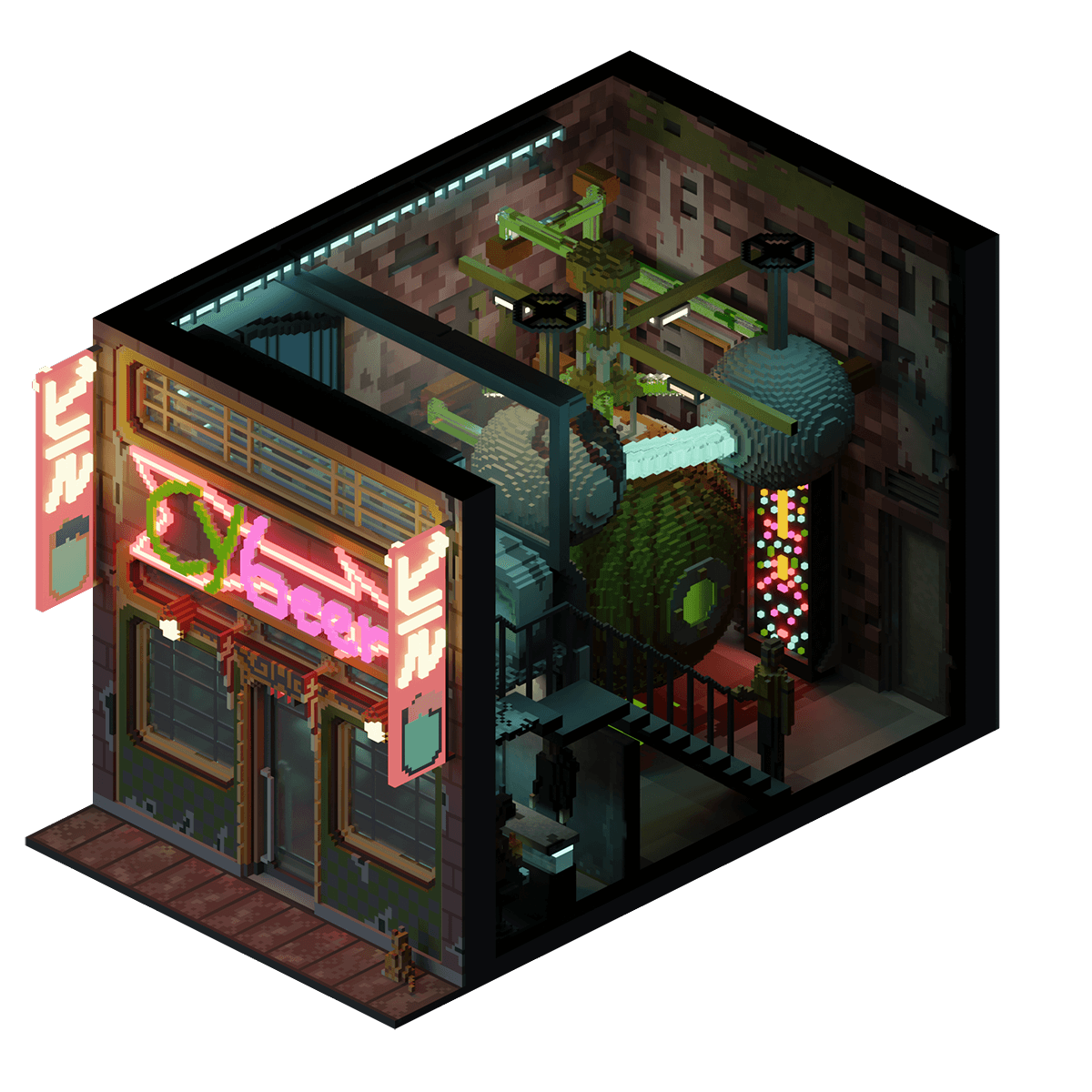 CYBER Distillery and Bar, the home to one of NeoTokyo's most iconic spirits still favored by the working class, many of whose grandparents helped construct the building years ago. The distillery now also offers both tours and tasting to attract visitors from higher up in the City.