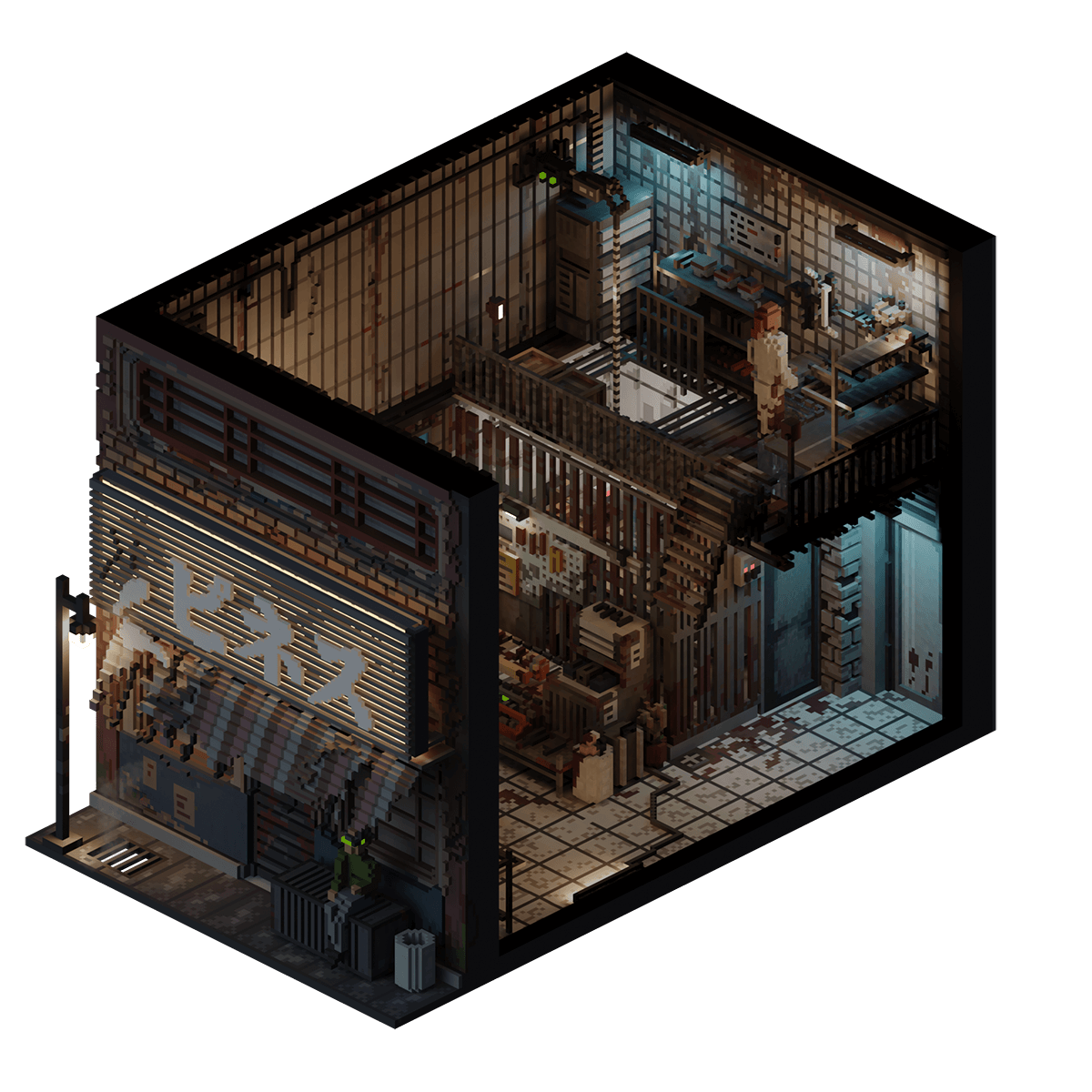 The Happiness Garage is a front for an illegal prosthetic harnessing operation run by a couple, where they lure in unsuspecting clients and then sedate and steal their prosthetics to resell - often at the expense of their victims' lives.
