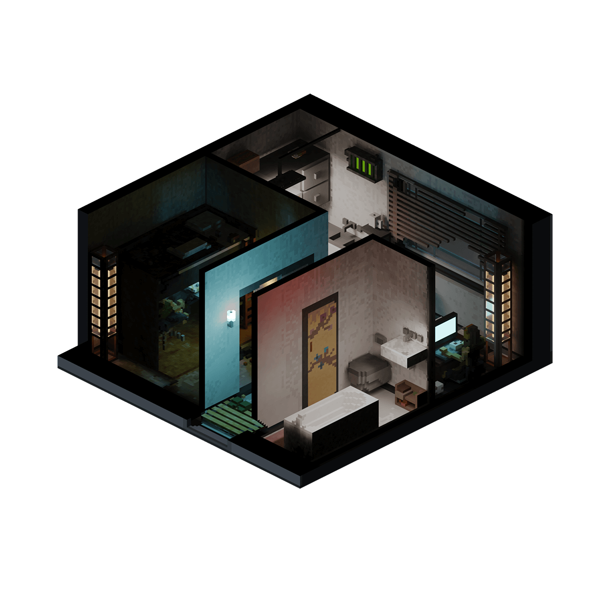 The single-bedroom apartment of an aspiring writer and her boyfriend who, while she sits in the living room writing the closing chapters of her manuscript, is sitting in their shared room playing video games.