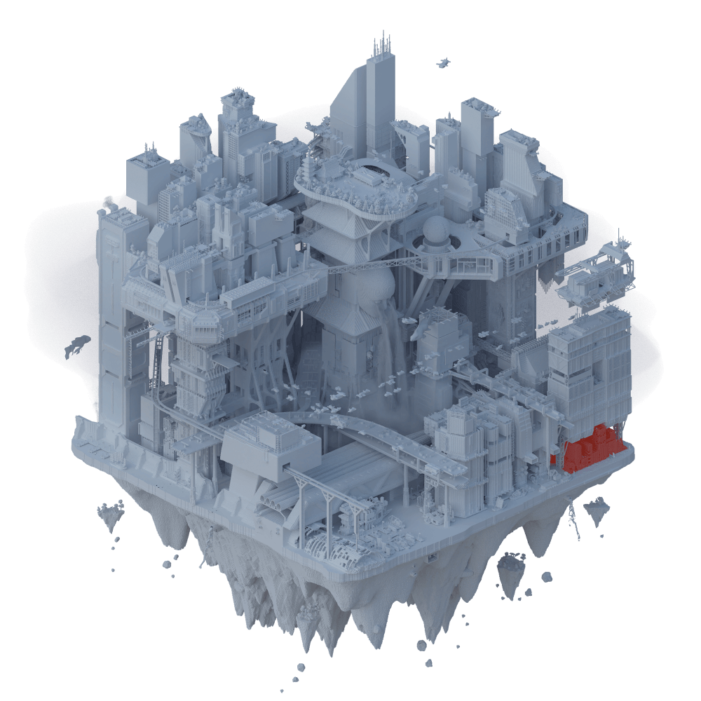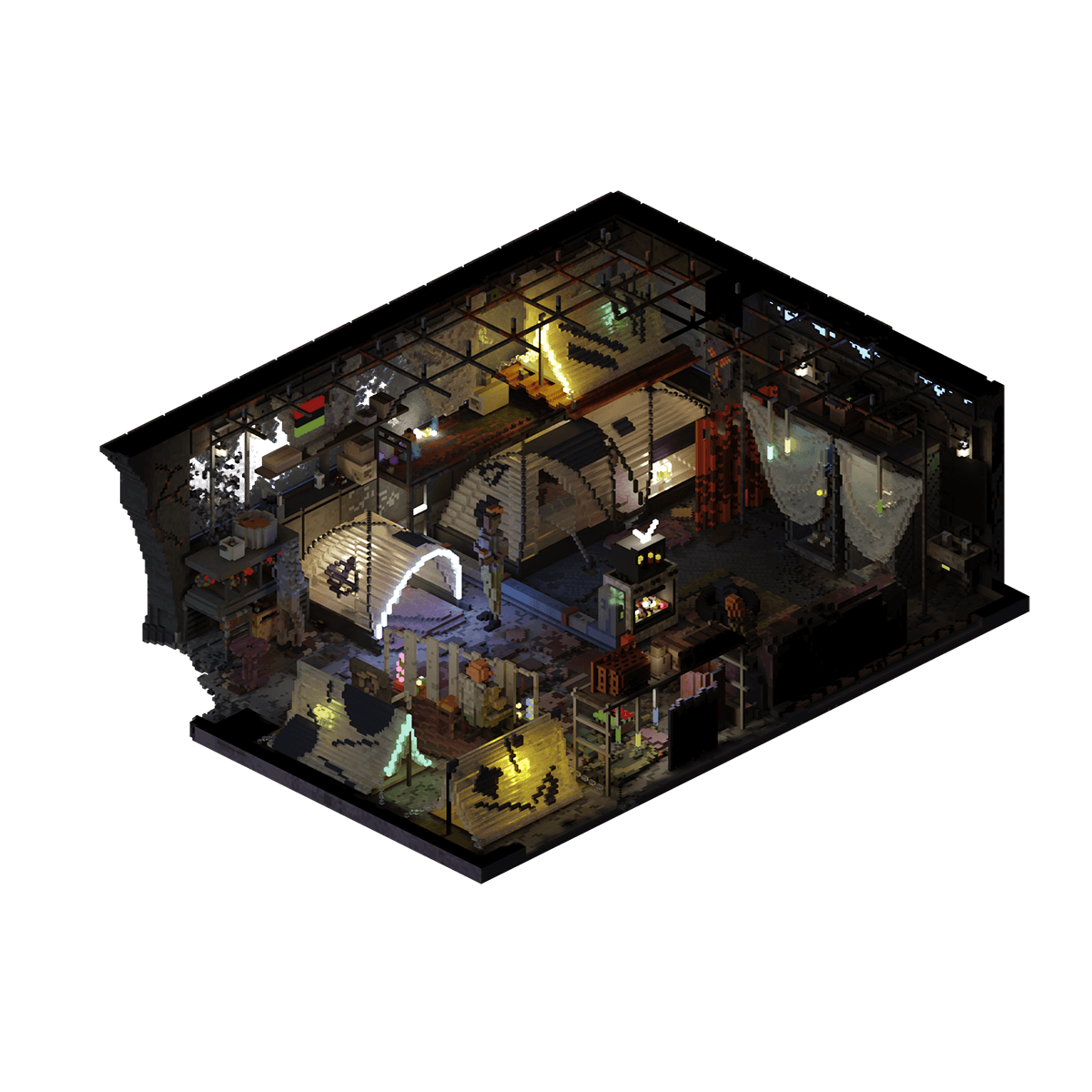 Camp Corrosion is a densely populated commune that was created by repurposing old rusted sheets of corrugated iron found floating around the canals of the city and turning them into shelters and furniture for the people that live within the camp.