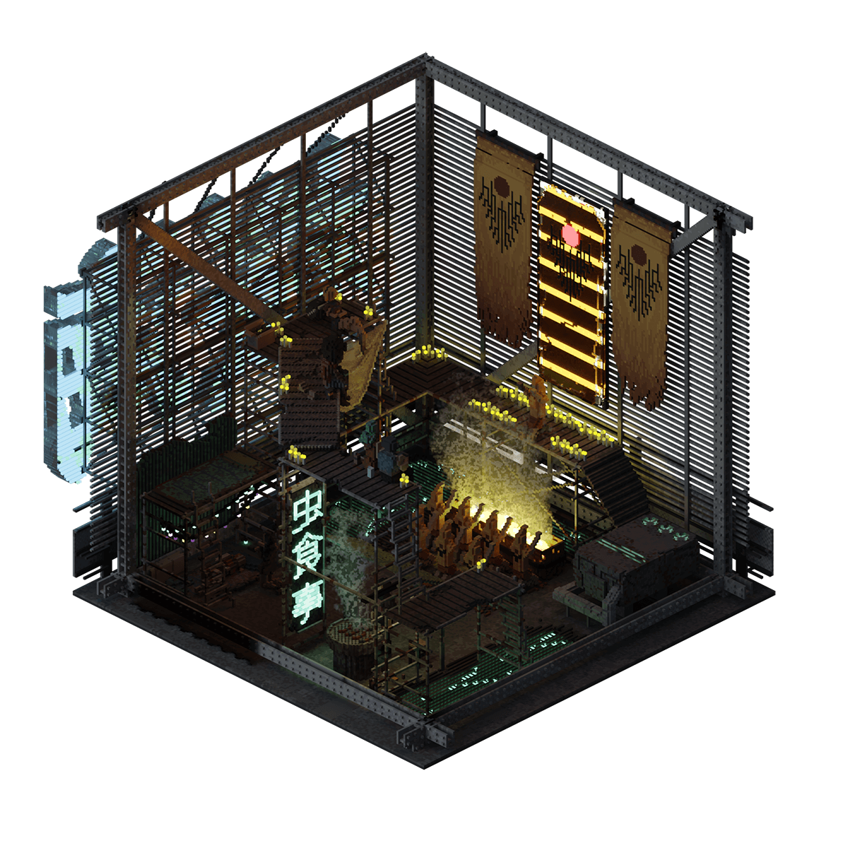 The Cult of All Giving Fire is a misunderstood group that prays for a better future for NeoTokyo. Currently indoctrinating a new member, they are holding a public ritual in an attempt to recruit more members to their cause.