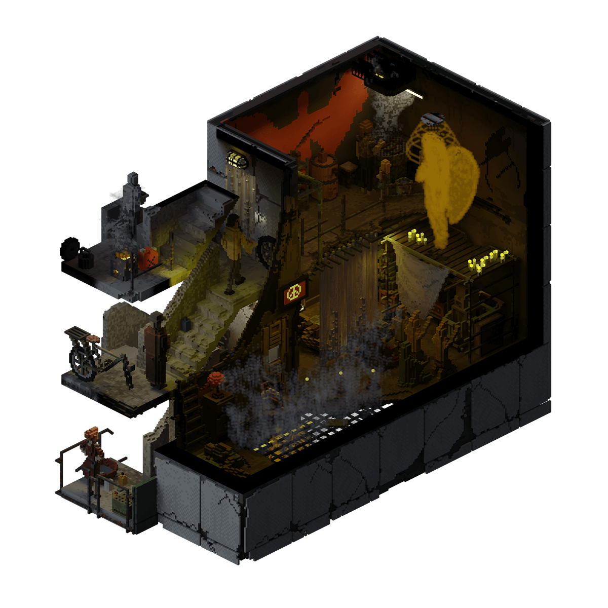 The Hall of the Gilded Mother is a shrine room dedicated to the worship and prayer of the Gilded Mother, an angelic deity believed to bestow wealth and prosperity to her followers who soars above them in the form of a hologram.