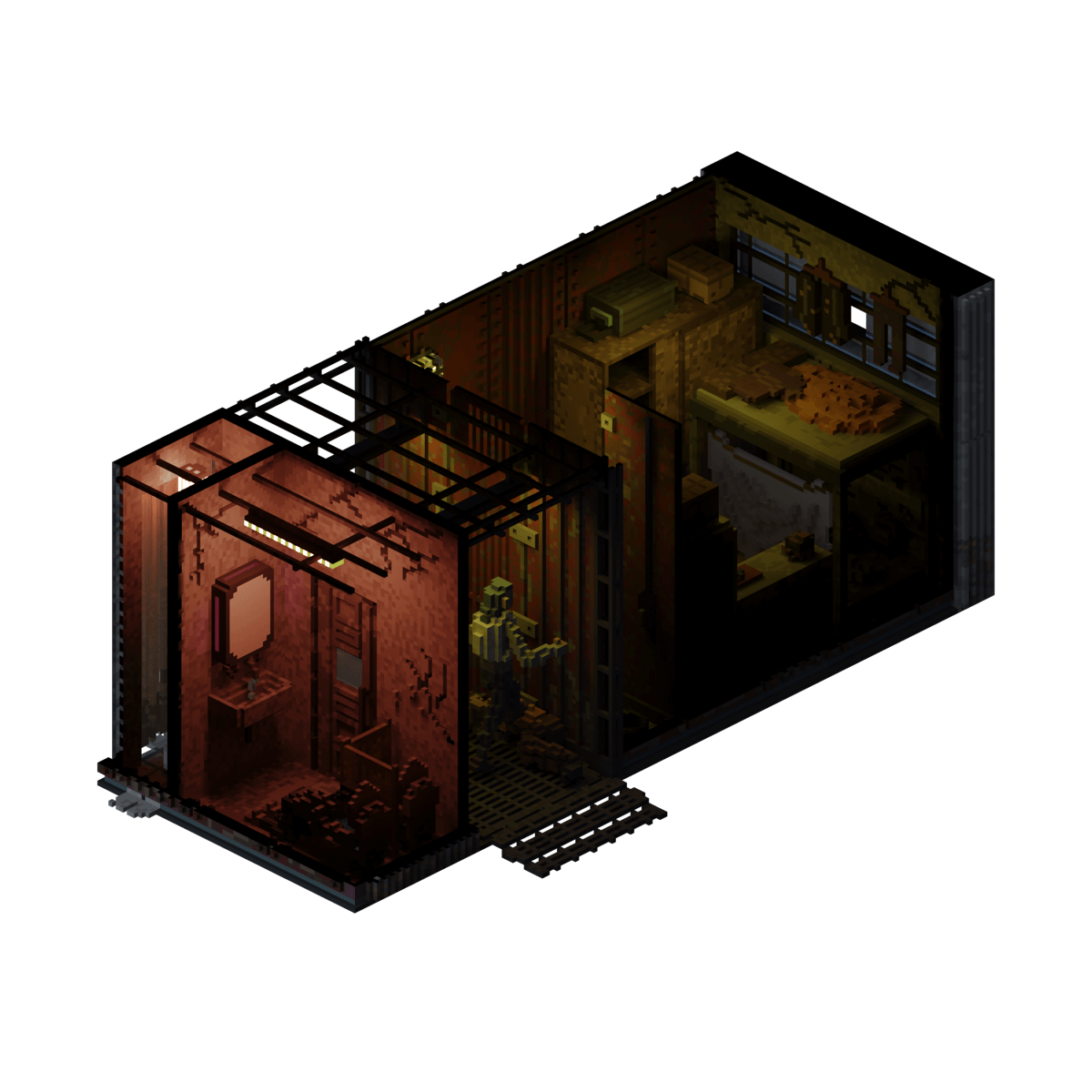 A small shared living space of some marine scavengers who, having just recovered a crate of alcohol from beneath the City's docks, are having a drinking session to celebrate their take. They hope that once it's sold, it will elevate them out of the poverty-stricken streets of Class 5.