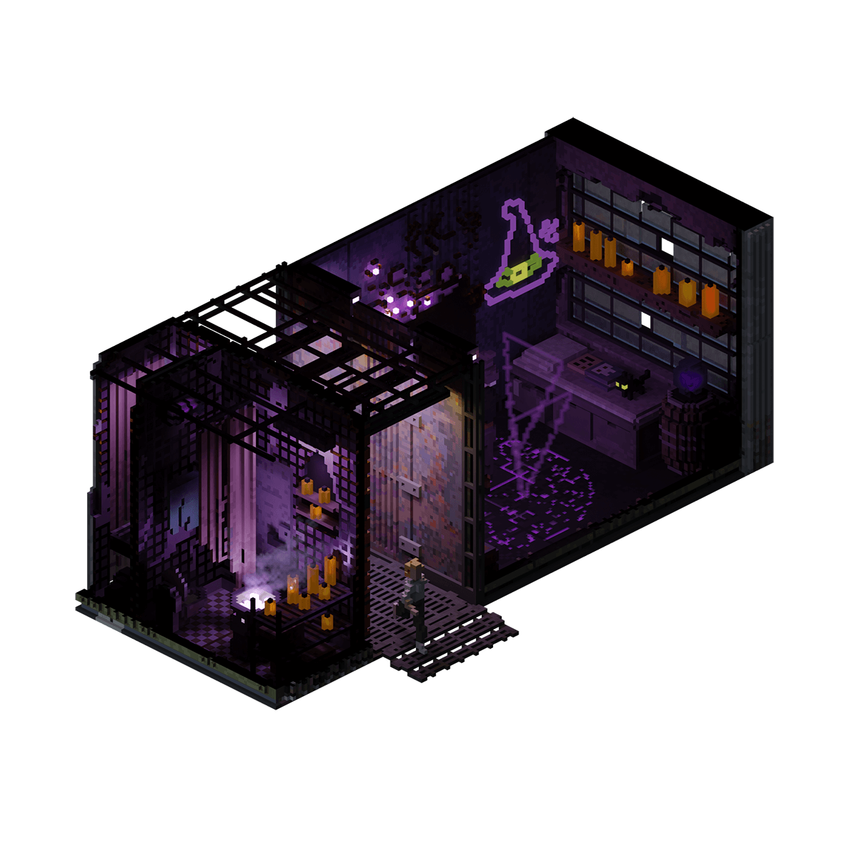 Emanating a mysterious purple light, this dimly lit shack, colloquially known as "The Witch's Lab", sells herbs, crystals, and candles - intended for those interested in dabbling in Wicca or spellcraft.